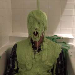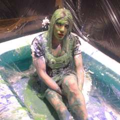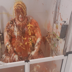 CinnamonPeach was gunged by Wet Jeans Manifesto in a booth